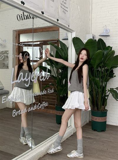 2024春夏スカート ミニ丈 Aライン フレア ハイウエスト 脚長効果 美脚効果 細見え レース 夏 かわいい キュート 甘め カジュアル 韓国ファッション レディース お出かけ
