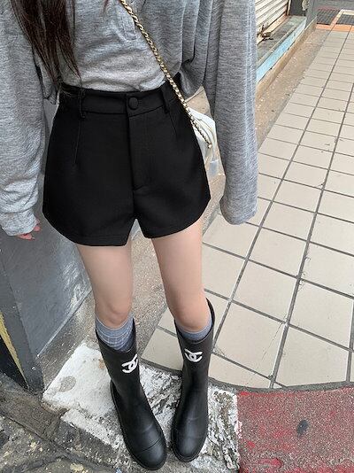 2024 春夏パンツ ショート丈 ハイウエスト 脚長効果 美脚効果 細見え 夏 黒 かわいい カジュアル 韓国ファッション レディース お出かけ