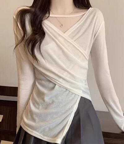 2024春夏 変形デザインでおしゃれに肌見せ デザイントップス オフショルダー 女っぽ 韓国っぽ 韓国ガーリー