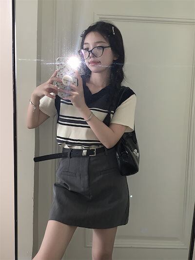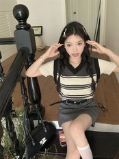 2024 春夏 セットアップ ショート丈 トップス ベスト スカートの2点セット アカデミズム学生 レディースニット 2点セットスカート 高校生 制服