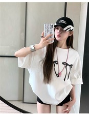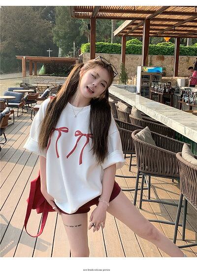 2024 春夏 甘い トップス Tシャツ ラウンドネック 休日 ファッション スリムフィット丈短め ショート へそ出し半袖 休日 レディース おしゃれ T
