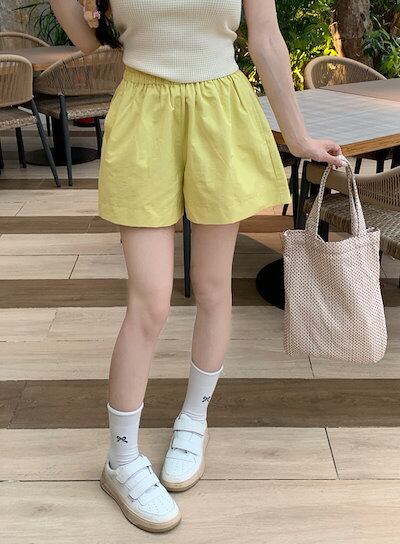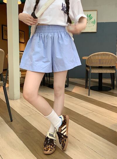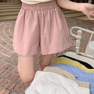 2024 春夏パンツ ショート丈 ワイド ウエストゴム ハイウエスト 美脚効果 脚長効果 細見え ゆったり 大きめサイズ 夏 白 黒 茶色 黄色 青 韓国ファッション レディース かわいい おしゃれ