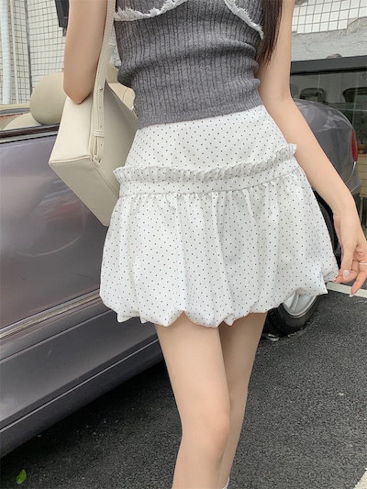 2024春夏スカート ミニ丈 Aライン ドット柄 ハイウエスト 脚長効果 美脚効果 細見え 夏 白 黒 カジュアル おしゃれ かわいい ガーリー 甘め 韓国ファッション レディース お出かけ
