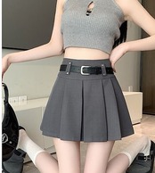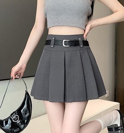 2024春夏インパン付きで安心!ベルトでウエストマークして脚長確定ミニスカート! 韓国ファッション 韓国系ストリート シズニルック 韓国ギャル ベルト ボックスプリーツ ミニスカート