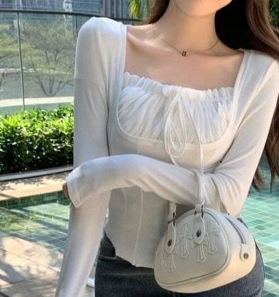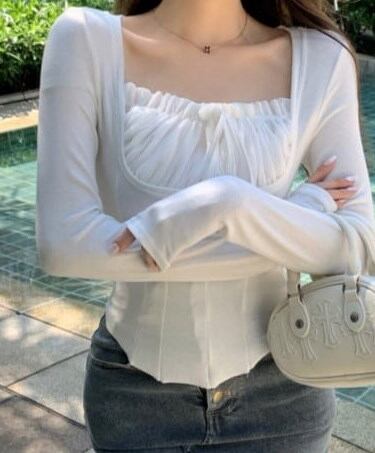 2024春夏ピタッとシルエットで女っぽ リブニット トップス フィット 韓国 カジュアル丈レディース フェミニン 色っぽ