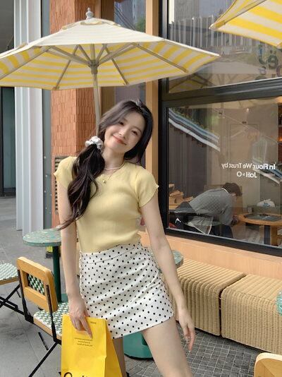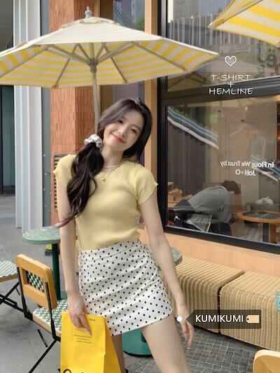2024 春夏 甘い トップス Tシャツ ラウンドネック 休日 ファッション スリムフィット丈短め へそ出しスカート 休日 おしゃれ T