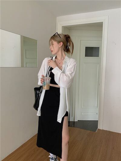 2024春夏トップス シャツ 長袖 ボタン 襟 スタンダードカラー バックオープン バック ゆったり 夏 白 ホワイト かわいい キュート おしゃれ 韓国ファッション レディース お出かけ
