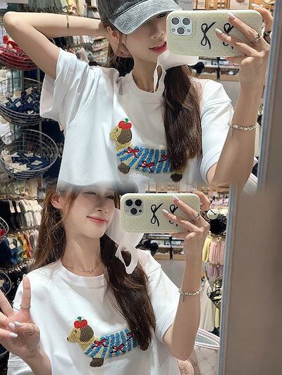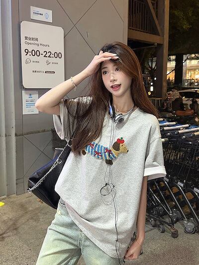 2024春夏 かわいいトップス Tシャツ ラグラン 長袖 丈長め ラウンドネックシルエットゆったり リラックス シンプル かわいい カジュアル韓国ファッションスリーブサイズお出かけ