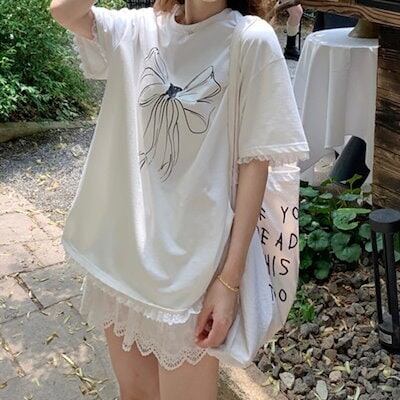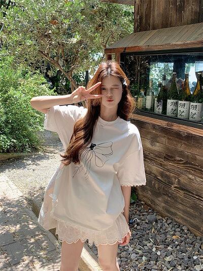 2024春夏トップス Tシャツ 半袖 ラウンドネック ゆったり 大きめサイズ 夏 白 シンプル かわいい ガーリー おしゃれ 韓国ファッション レディース お出かけ