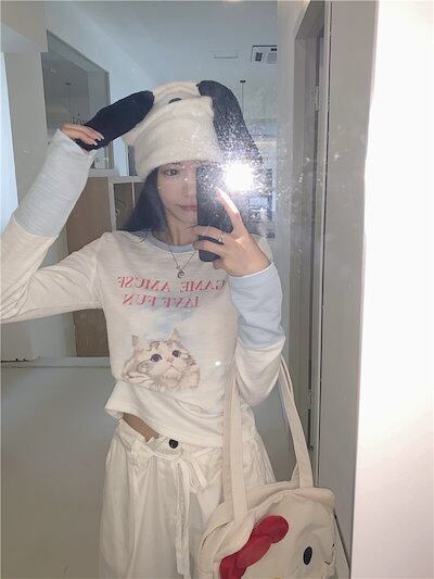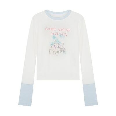 2024春夏 Tシャツ ショート カットソー 長袖 トップス カジュアル 配色 韓国ストリート タイト スリーブ 肌見せ T ファッション かわいいトップス レディース