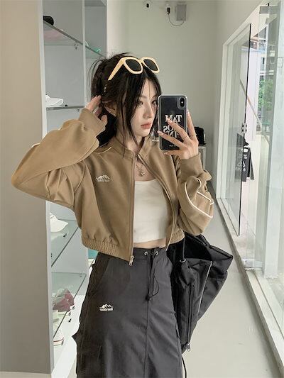 2024春夏 ショート かわいい フル ブルゾン トップスアウター ショート丈 スタンドショートお出かけハイストリートアウター長袖セクシートップスカジュアルファッションお出かけ 秋トラック