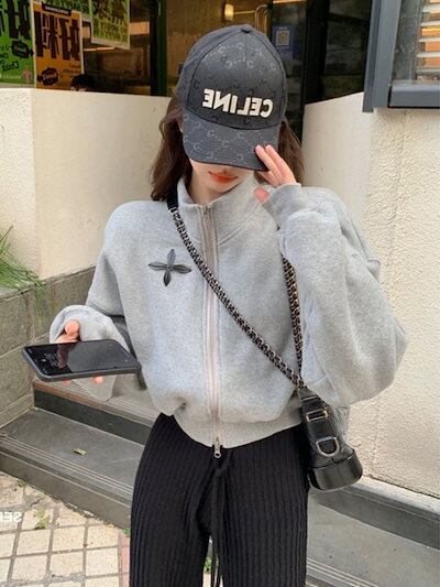 2024夏 韓国 アウター ショート ブルゾン かわいいフル アウター トップス ハイスタンド ショートストリートレディース長袖 カジュアル ファッションお出かけトラック