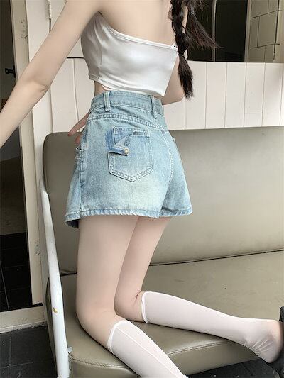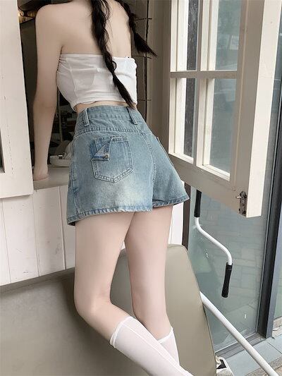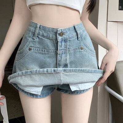 2024 春夏パンツ キュロット デニム ショート丈 ハイウエスト 脚長効果 美脚効果 細見え ウォッシュ加工 夏 かわいい カジュアル 韓国ファッション レディース お出かけ