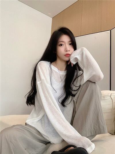 2024春夏 ニットトップス レディース長袖 韓国ファッション 可愛い ニット プルオーバー セクシー ニット ショート丈トップスおしゃれ 薄手透け感 クロシェ ニット ニッ
