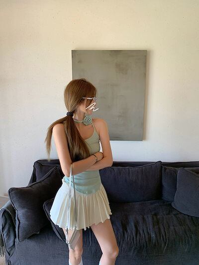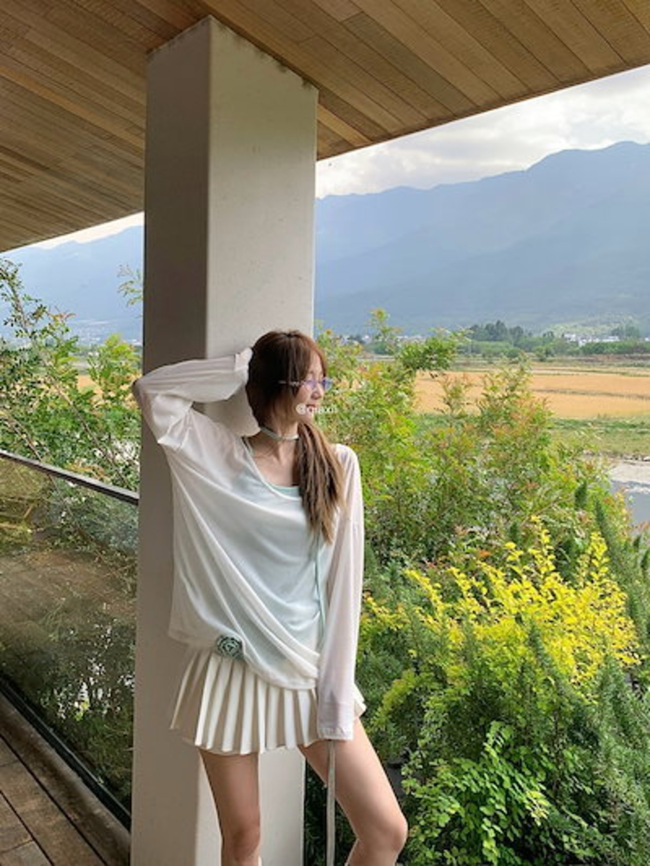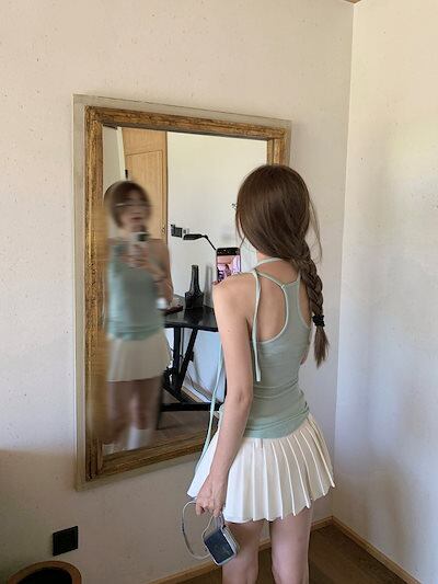 2024春夏 トップス 長袖 レイヤード風 tシャツ 重ね着風 キャミソールカットソー インナー ショート長袖レースアップ タイト フィット T カジュアル フェミニン きれいめ ネックレディース
