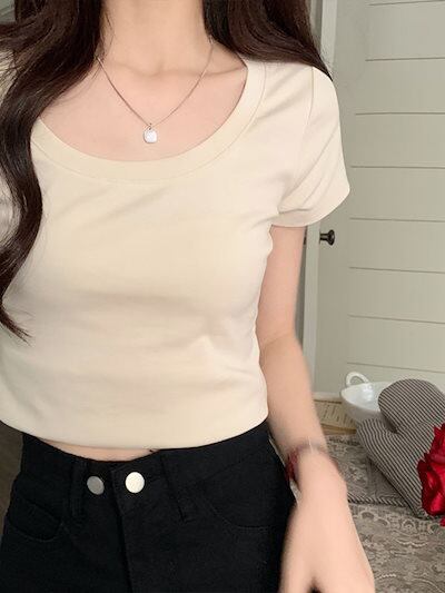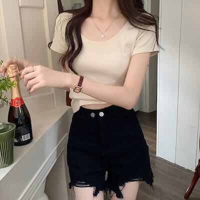 2024 春夏 甘い トップス Tシャツ ラウンドネック 9色展開丈 休日 ファッション スリムフィット丈短め ショート へそ出し 休日 おしゃれ T