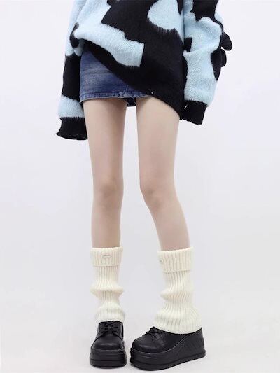 足カバー メタリックラベルレギンスY2KレディースJKスタッキングソックスニットウールソックス