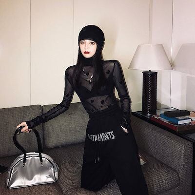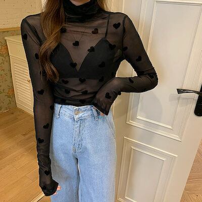 2024春夏 透けアイテム を楽しむ 透明感UP 長袖 タイト tシャツ ファッション 韓国 トップス デザインハイネックカットソーTイラストエンジェル 長袖 ロングプリント カジュアル 夏春 秋