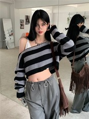 2024春夏 トップス 長袖 ニット レディース ショート おしゃれ カラバリ ハーフ カラー スタイルアップ プル色っぽ 女っぽ カジュアルきれいめ大人ネックファッション加工フェミニン秋冬系