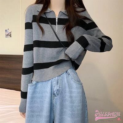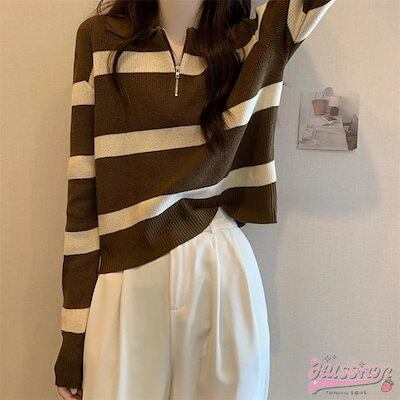トップス オシャかわ 長袖 ニット セーター カジュアル おしゃれ カラバリ ハーフ カラー スタイルアップ 色っぽ 女っぽ カジュアル きれいめ 大人っぽ 上品 ファッション フェミニン 秋冬春