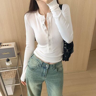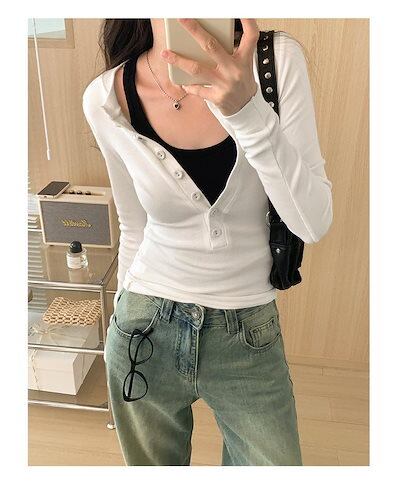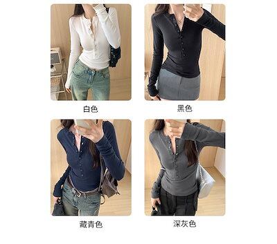 2024春夏 トップス 長袖 可愛い おしゃれ タイトフィット ラウンドカラー 重ね着丈 スリーブ 女っぽ Tファッション フェミニン きれいめ 色っぽ プリント