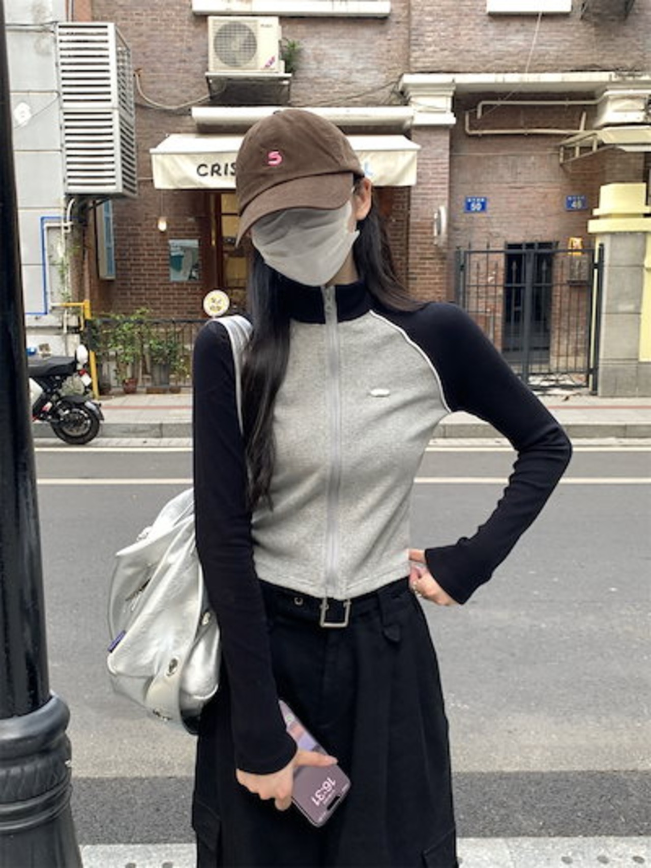 2024春夏 アウター ショート ブルゾン かわいい 長袖 カジュアル ファッション フルブルゾン トップス ハイスタンド ストリート レディースお出かけトラック