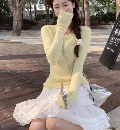 2024 春夏 トップス T シャツ かわいい カジュアル 女っぽ ショート ファッション きれいめスリーブ 大人っぽ 上品お姉さんサイズゆったりシルエット フェミニン秋冬