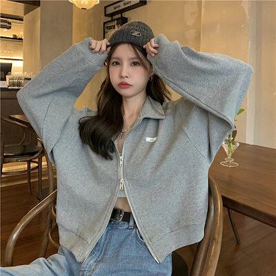 2024 春夏 ショート かわいい フル ブルゾン トップス アウター ショート スタンド ショート お出かけトラックハイ ストリートアウター長袖 セクシートップスカジュアルファッション秋
