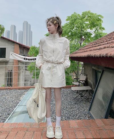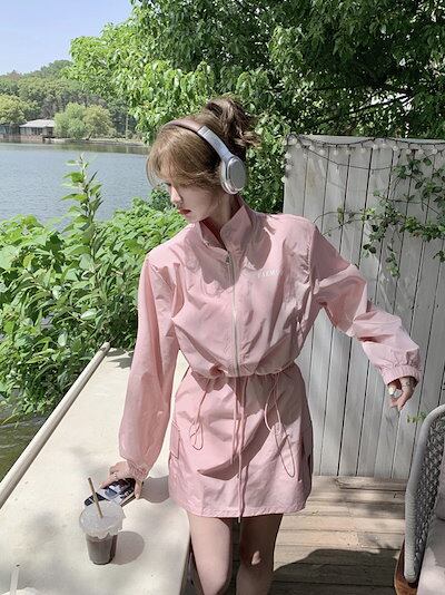 フェス2024 春夏 アウター ブルゾン 羽織り ゆったり ボトムスフルフレンチスリーブシルエットウエストゴム サイズミニスカート カジュアル ストリート フェス レジャー お出かけトラック
