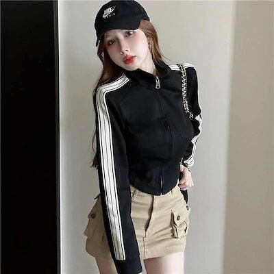 2024 春夏 ショート かわいい フル ブルゾン トップス アウター ショート スタンドショートお出かけハイストリートレディースアウター長袖セクシー トップスカジュアルファッション夏トラック