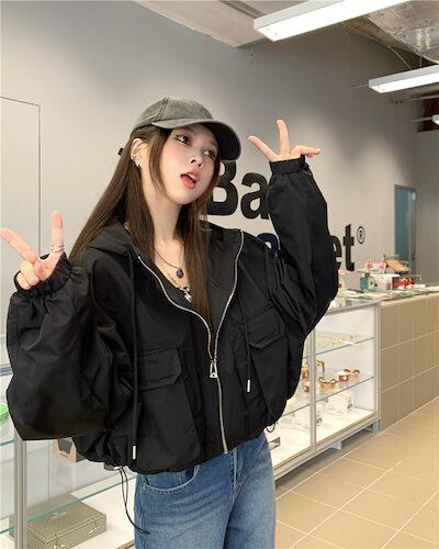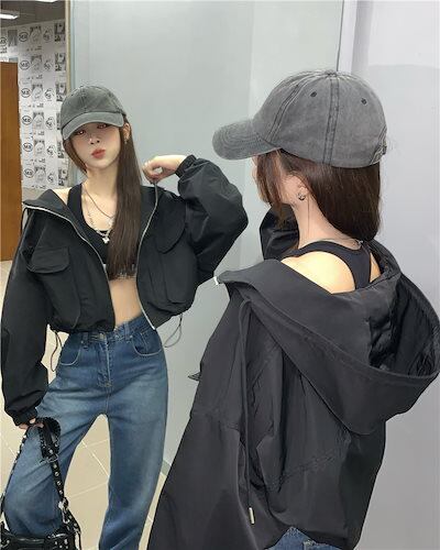2024春夏 ショート かわいい フル ブルゾン トップス アウター ショート スタンド ショートお出かけハイストリートアウター長袖セクシートップスカジュアルファッションお出かけ 秋トラック