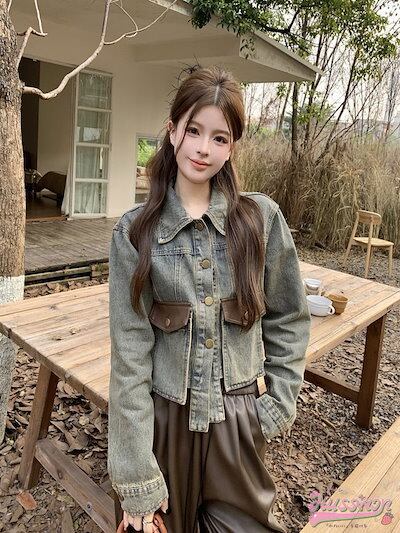 2024春夏アウター ジージャン デニム生地 ジャケット 丈短め ショート丈 襟 スタンダードカラー ボタン レトロ ヴィンテージ感 春 韓国ファッション レディース おしゃれ お出かけ