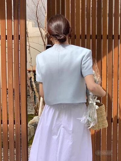 2024 春 アウター 半袖 トップス ジャケット ブラウス ホワイト ブラック ブルー フェミニン 上品 きれいめ 夏 羽織 通勤 お姉さん 大人っぽ 大人女子 ファッション
