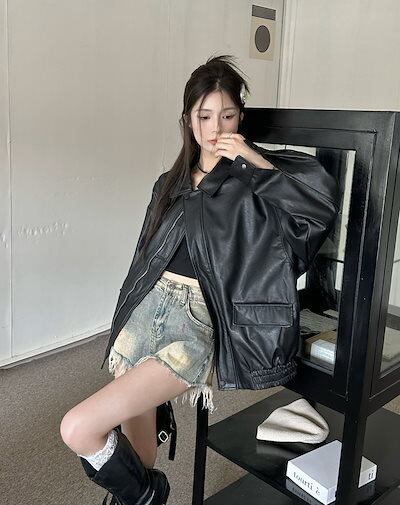 2024 春夏 長袖 かわいい ショート アウター ブラック 羽織り合成バイカラーカジュアル きれいめ 女っぽ きれいめ ファッション 色っぽ 女っぽカジュアルきれいめ大人