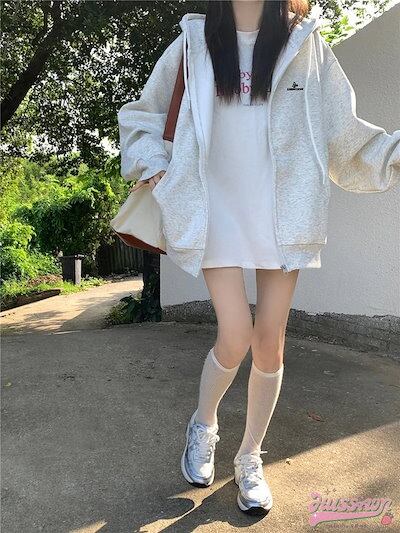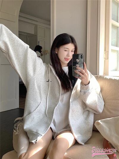2024 春夏 アウター パーカー オフホワイト ゆったりサイズ付き秋 ファッション お出かけ