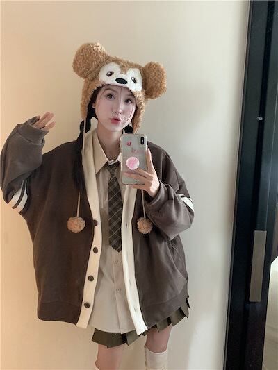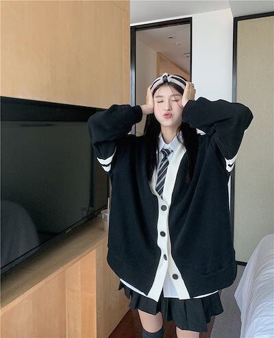 2024 春夏 アウター 長袖 秋 ストライプ ボタン コントラストカラー ファッション おしゃれ 可愛い Vネック 休日 お出かけ スタイル