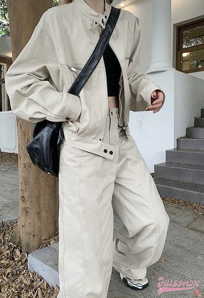上下別売り 長袖 ショート ジャケット パンツ セットアップ かわいい ワイドパンツ ストレートゆったり アウター ファッション 上下セット カジュアル ハイウエスト レディース スタイルアップ 秋冬