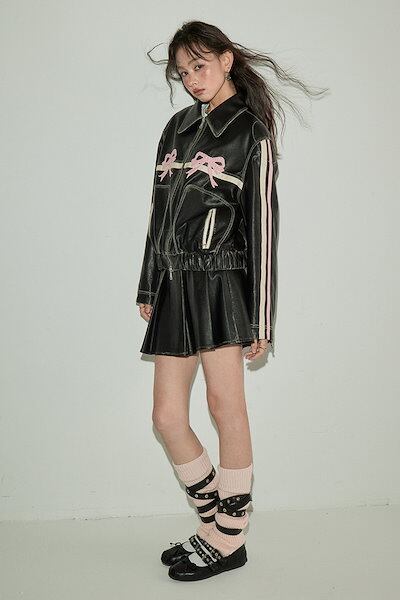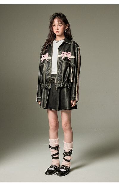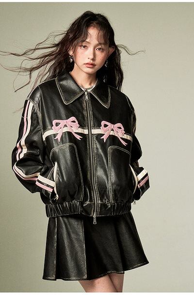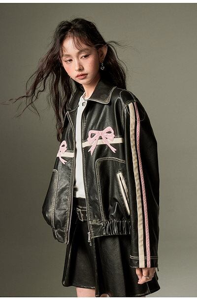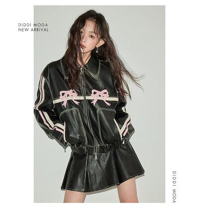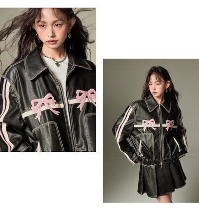 2024 春 甘くてかっこいい 長袖 韓国ジャケット かわいい ショート アウター ブラック 羽織りレディース合成 バイカラーカジュアル 女っぽ きれいめ ファッション 色っぽ 大人