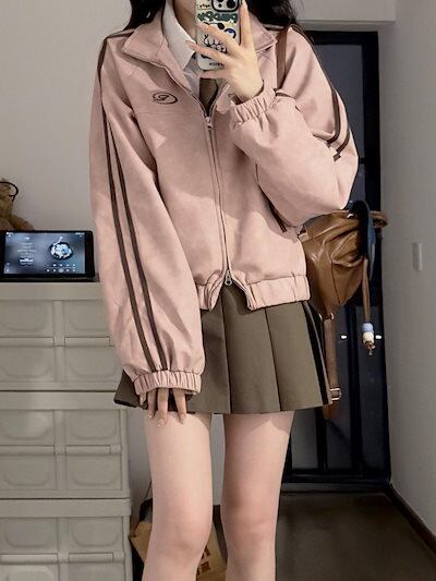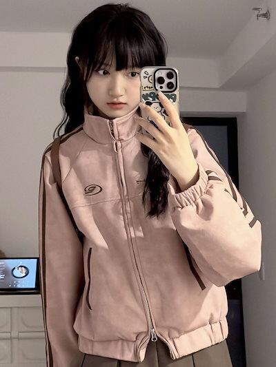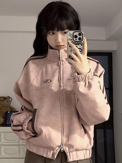 2024 春夏パーカー ショート かわいい トップス アウター ショートハイ スタンド ショート ストリート レディース 長袖 セクシー夏秋トップス カジュアルファッションフルブルゾンお出かけトラック★2