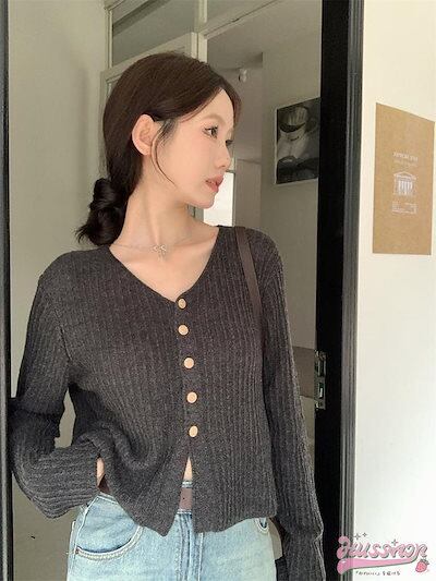 Vネック長袖セーター レディース 長袖 アウターカーディガン 韓国ファッション 可愛い シンプル 大人
