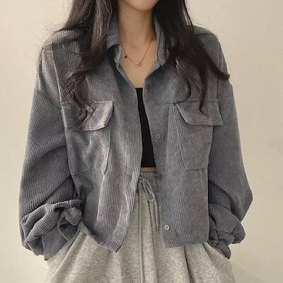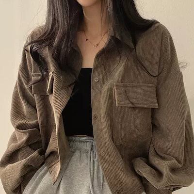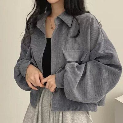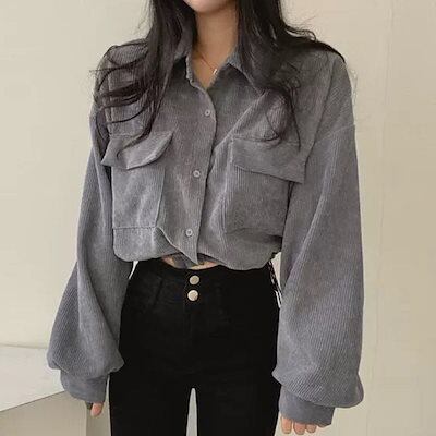 ヘビロテ間違いなし コーデュロイ シャツ ボリューム袖 メンズライク 古着ライク クロップド丈 韓国っぽストリートy2k 胸ポケット カジュアル