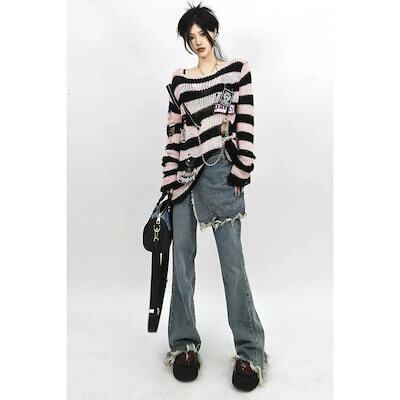 パンクY2Kサブカルチャー_スモールストレートロックイレギュラージーンズレディース袴スカート