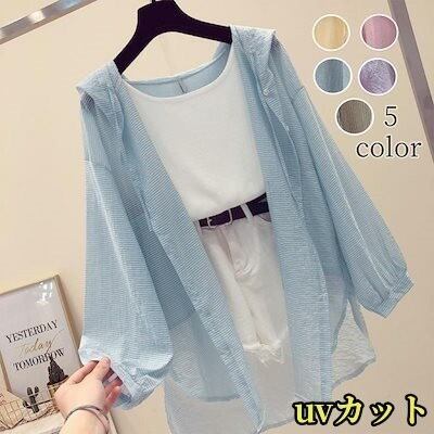 シアーシャツ UVカット夏軽薄 uvカットパーカー ストライプ 日焼け防止 カーディガン紫外線対策 接触冷感 トップス体型カバー 薄手 秋 アウターシャツ レディース