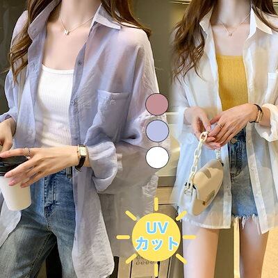シアーシャツ 夏 軽薄 uvカットシャツ レディース 冷房対策 カーディガン アウター 韓国ファッション 無地 ブラウス 紫外線対策ワイシャツ 百掛け 日焼け防止 トップス
