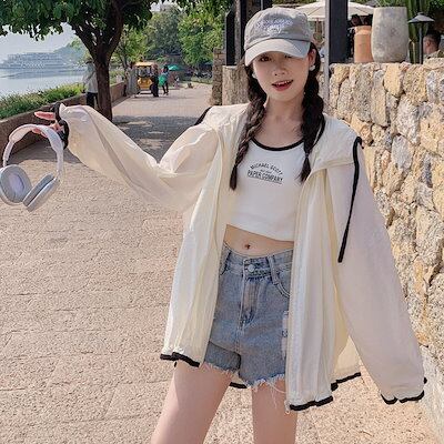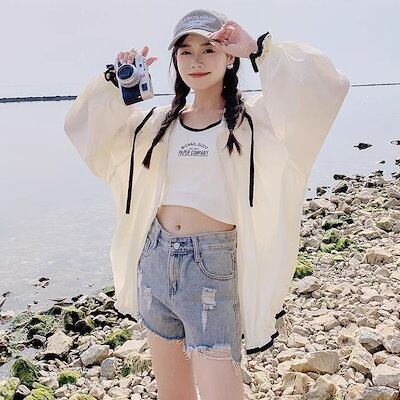uvカットパーカー 韓国ファッション 日焼け対策 ブラウス レディース ゆったり 怠惰な風 百掛け パーカー uvアウター 紫外線対策 体型カバー シャツ Tシャツ カーディガン
