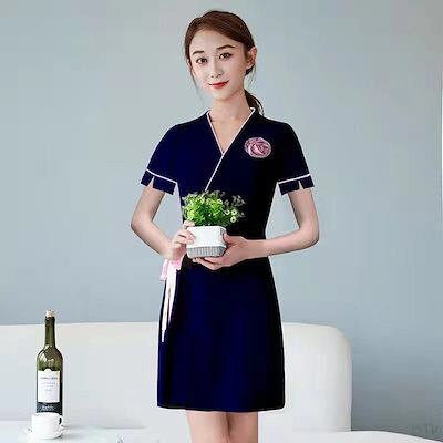 【上品 】サロンウェア ワンピース ユニフォーム エステ サロン通勤 レディース 女性 制服 半袖 気質 美容 介護 美容院通勤 スキンケア ワンピース セットアップ