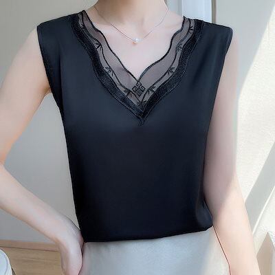上品 夏 キャミソール レディース 高級感 ノースリーブ Tシャツ セクシー レースVネック 着痩せ アイスシルクトップス 百掛け アンダーウェア 冷感 キャミソール インナー 大きいサイズ