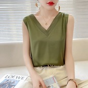 上品 夏 キャミソール レディースセクシーメッシュVネック 着痩せ ノースリーブ Tシャツ 韓国ファッション アイスシルク 百掛け アンダーウェア 冷感 キャミソール インナー大きいサイズ トップス★1