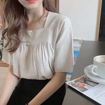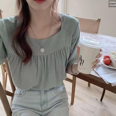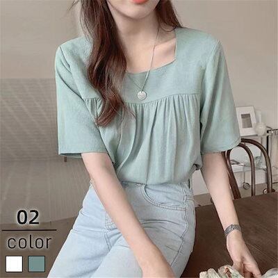 シアーシャツ 夏 ブラウス レディース スクエアネック 着痩せ 半袖 tシャツ レディース 韓国ファッション 気質 百掛け シャツ 通勤 半袖 トップス
