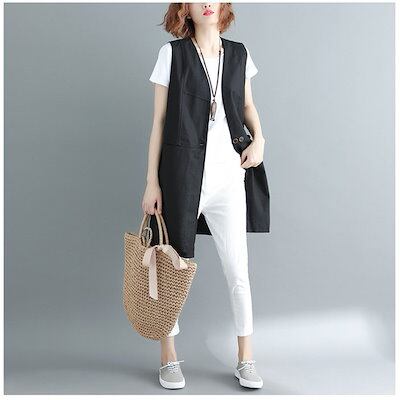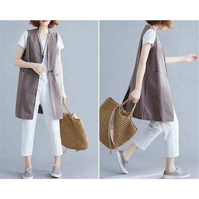 ベスト レディース 春 リネンライクロングジレ ジレ ロングコートノースリーブ ロングジレ トレンチ